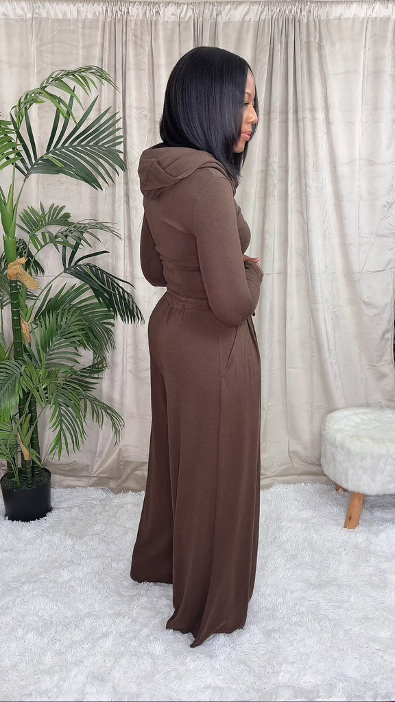 The Blair Two-Piece Set is your answer to looking polished without trying. Crafted from a luxe, breathable knit, this set features a clever neckline that transitions from elegant drape to cozy hood—style it off-the-shoulder for effortless sophistication. The matching wide-leg pants boast an adjustable drawstring waist and practical side pockets, so you're covered for comfort and function. Flattering, versatile, and endlessly adaptable, throw it on with heels for dinner, boots for brunch, or sneakers for travel. Airport chic has never felt this good.